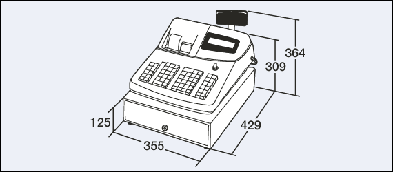 幅355×奥行429×高さ309mm (客側表示器ポップアップ時:364mm)