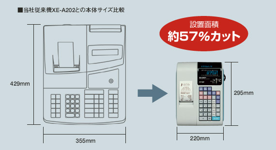 「限られたカウンタースペースを有効に活用したい…」そんな声にお応えして、本体の大きさをコンパクトなA4雑誌サイズ(220mm×295mm)に凝縮しました。設置面積は従来機の半分以下なので、狭いカウンターにもすっきり設置できます。しかも、ラウンドフォルムを取り入れたスタイリッシュなデザインです。