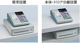 お客様ご自身で、ドロアとレジスタ本体を簡単に分離可能。ドロアをお客様の視線から隠れるカウンターの下に置くなど、フレキシブルに設置できます。(延長ケーブル2m同梱)